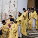 После литургии состоялся крестный ход вокруг храма, в завершение которого была прочитана молитва собору трех Святителей и возглашено многолетие. По окончании богослужения настоятель Богородицерождественского храма священник Георгий поблагодарил священнослужителей за совместные молитвы и поздравил всех с праздником.